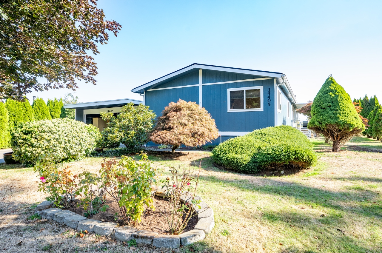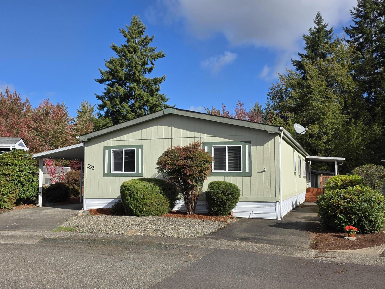 Discover wide-open outdoor space, and breathtaking MT RAINIER VIEWS in this immaculate 2-bedroom, 2-bath home. Sunlight fills every room, highlighting the spacious layout and inviting atmosphere. The modern kitchen boasts gorgeous cabinetry and sleek stainless steel appliances. The huge primary bedroom offers room for a cozy sitting area, and is complimented by an ensuite bath. Take in the breathtaking surroundings right from your living spaces! Outside, enjoy a large carport with an RV plug-in. Inside showcases thoughtful updates including vinyl windows, and easy-care laminate flooring. Step out your front or back door to soak in the gorgeous mountain scenery—this is the perfect home for those who love beauty and space all around them!